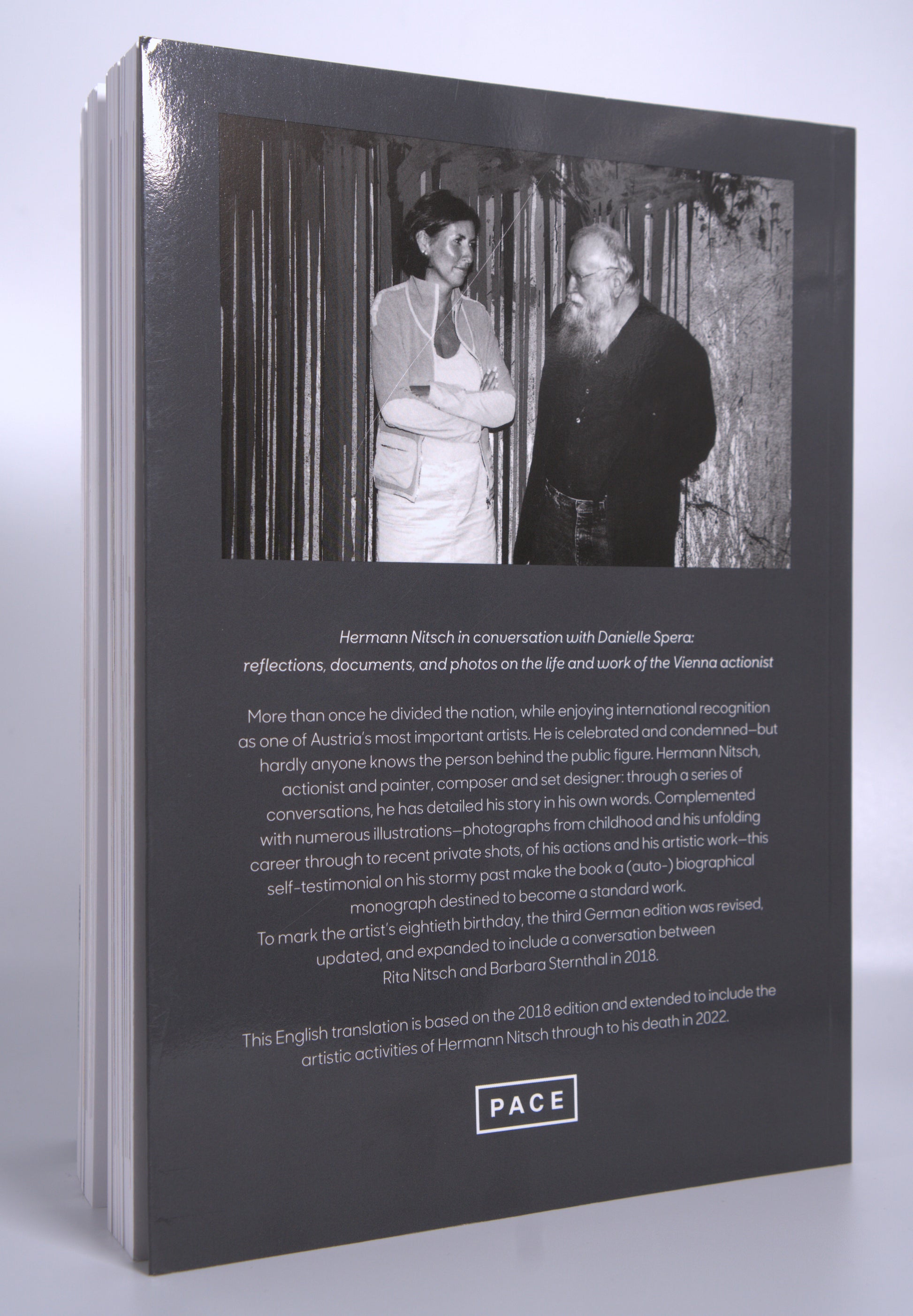The interview is illustrated by images of his works, shots from the studio and of his Aktionen, archive photographs, and further material such as flyers and newspaper clippings. Excerpts from Nitsch’s writings complement the conversation between Spera and the artist.